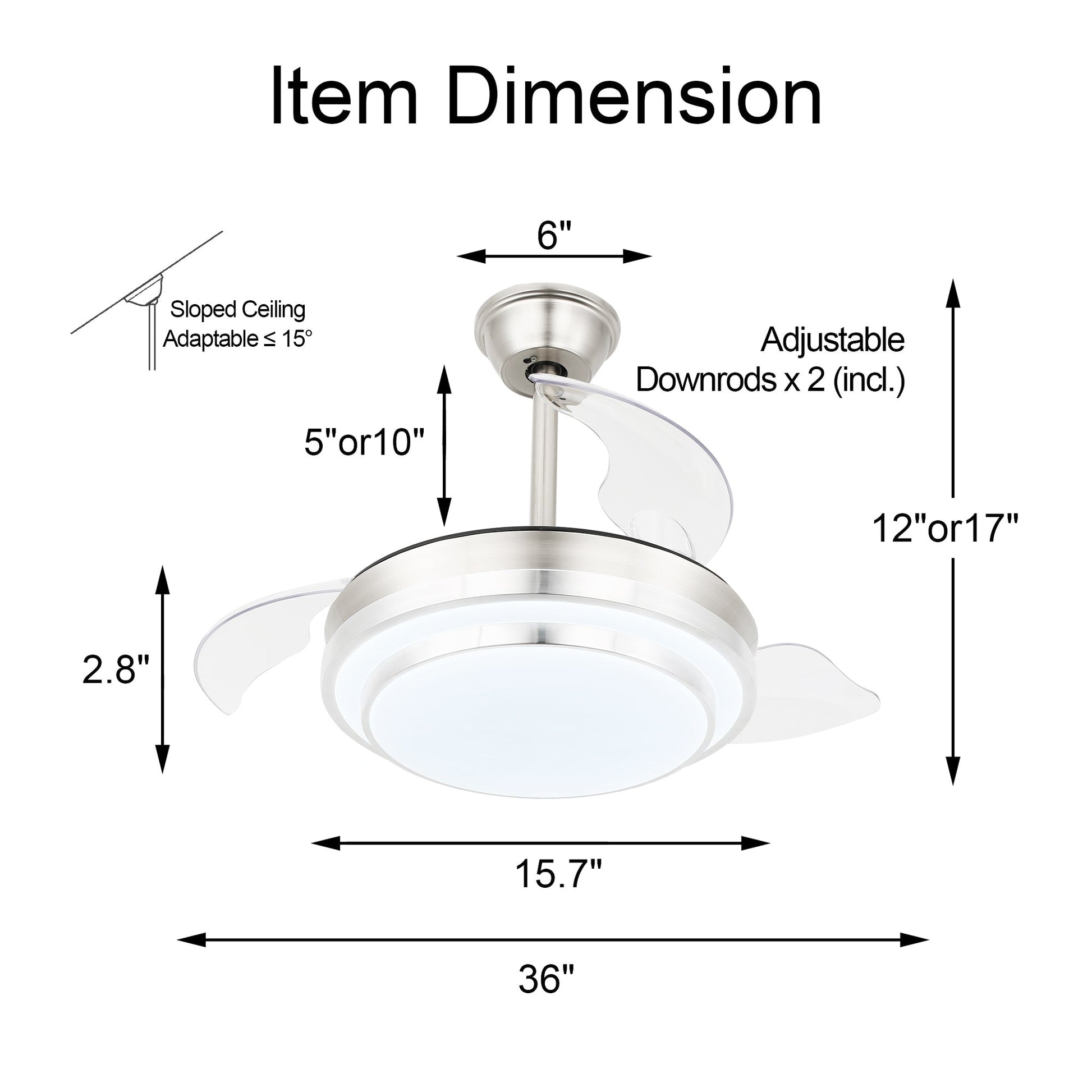 Bella Depot 36 Modern Retractable Ceiling Fan with Led Light, 6-Speed Reversible Blades with Remote