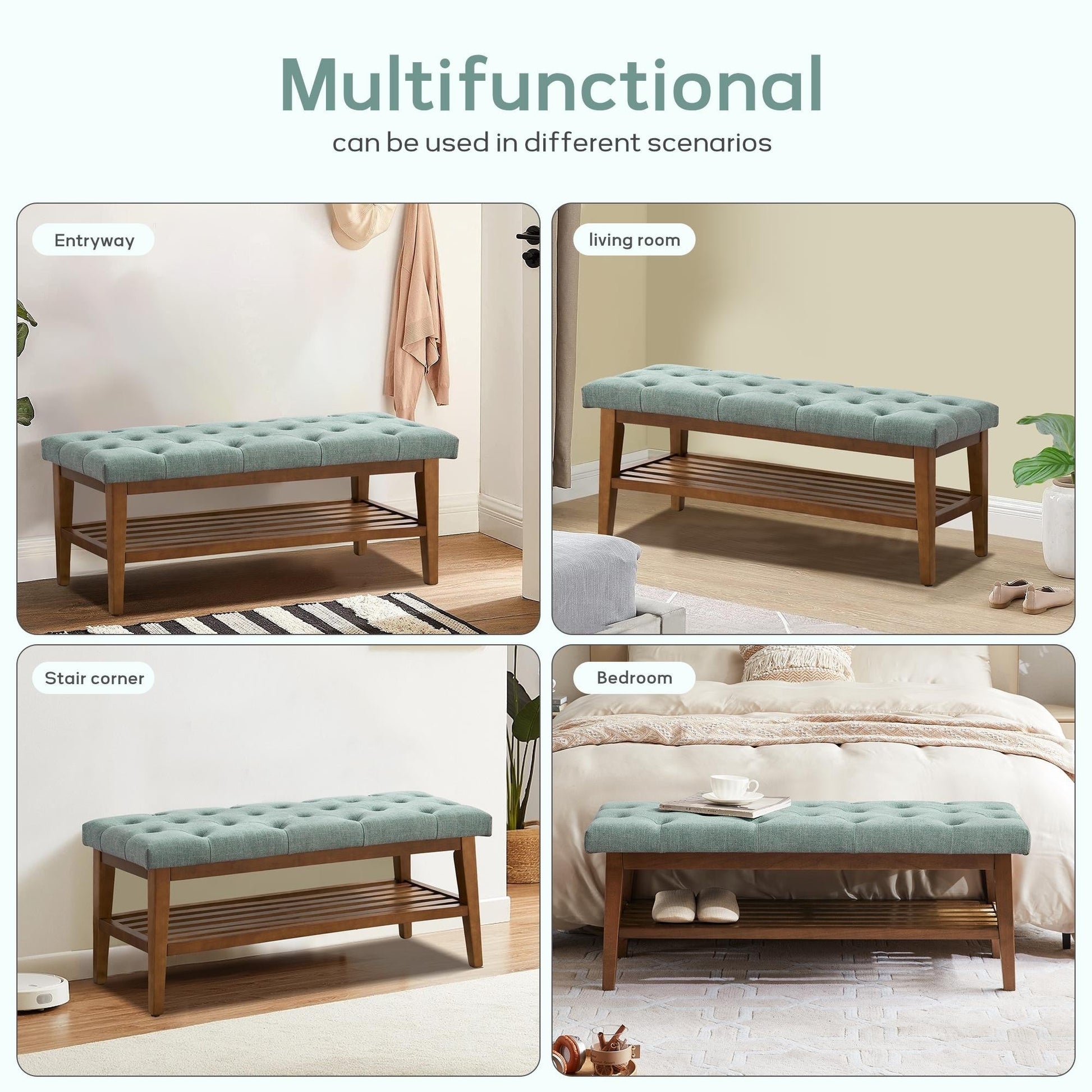 Entryway Shoe Bench Storage Bench Fabric Solid Wood, 43-inch Upholstered Bench for Living Room, Bedrooms