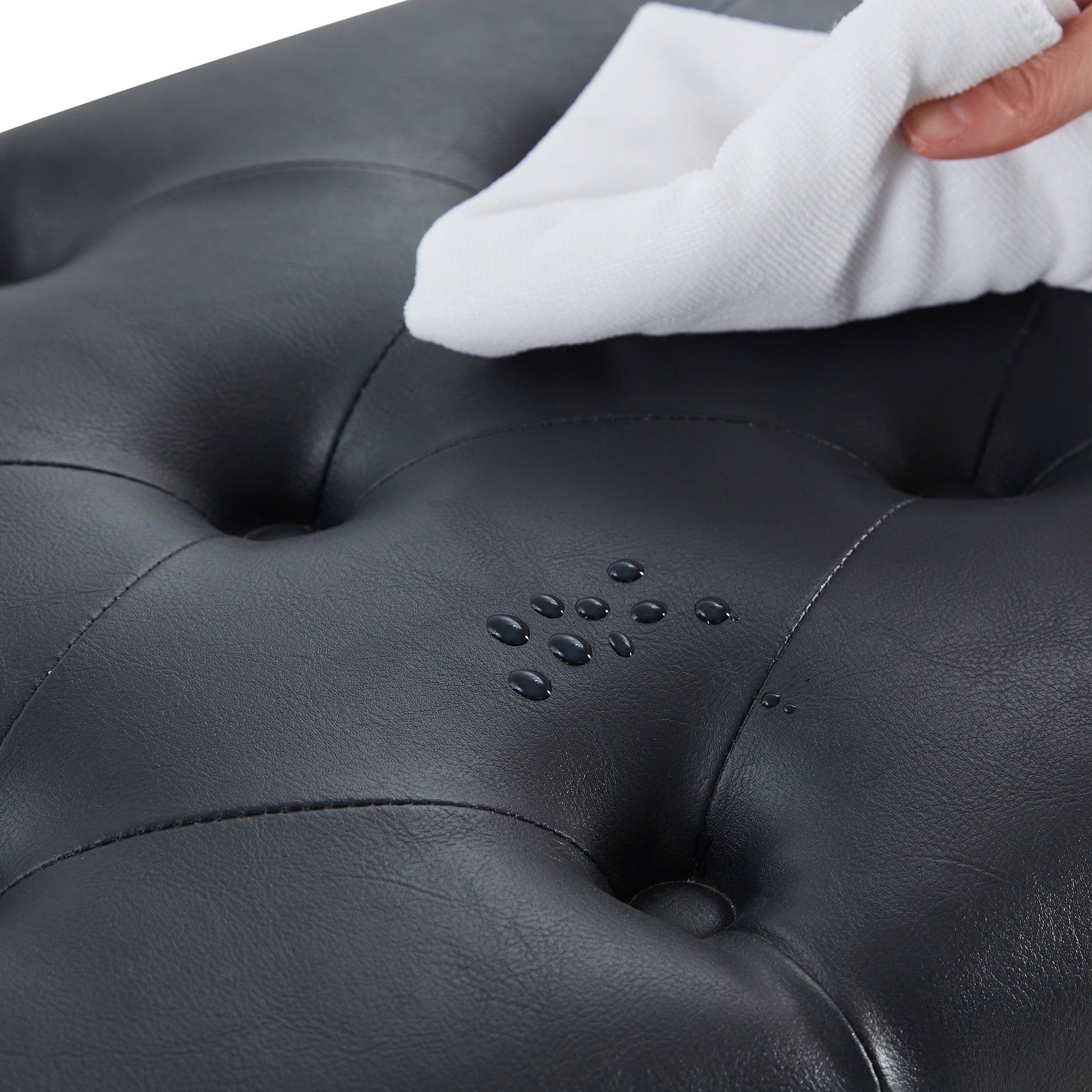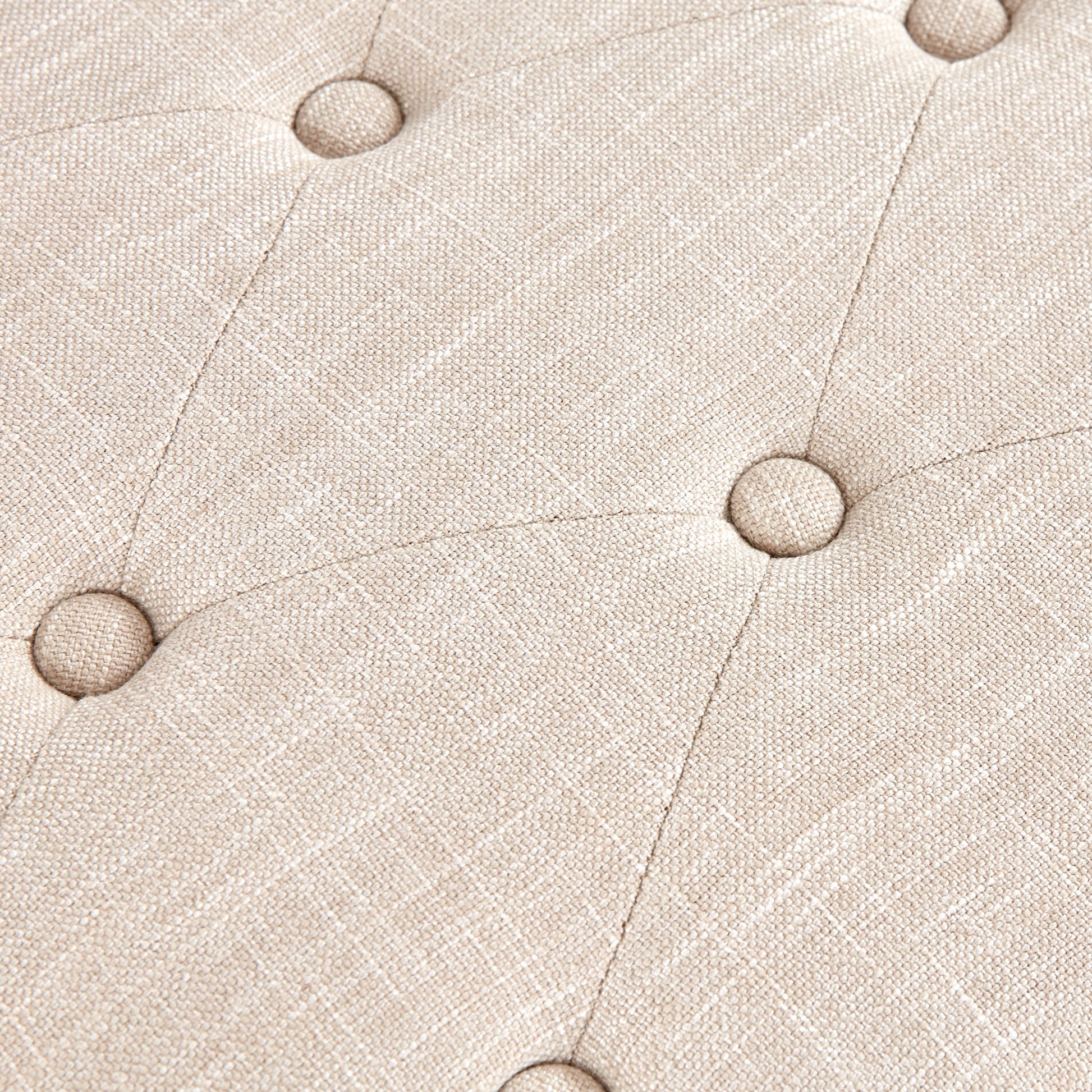 - Soft linen fabric meets solid wood frame in our stylish bench