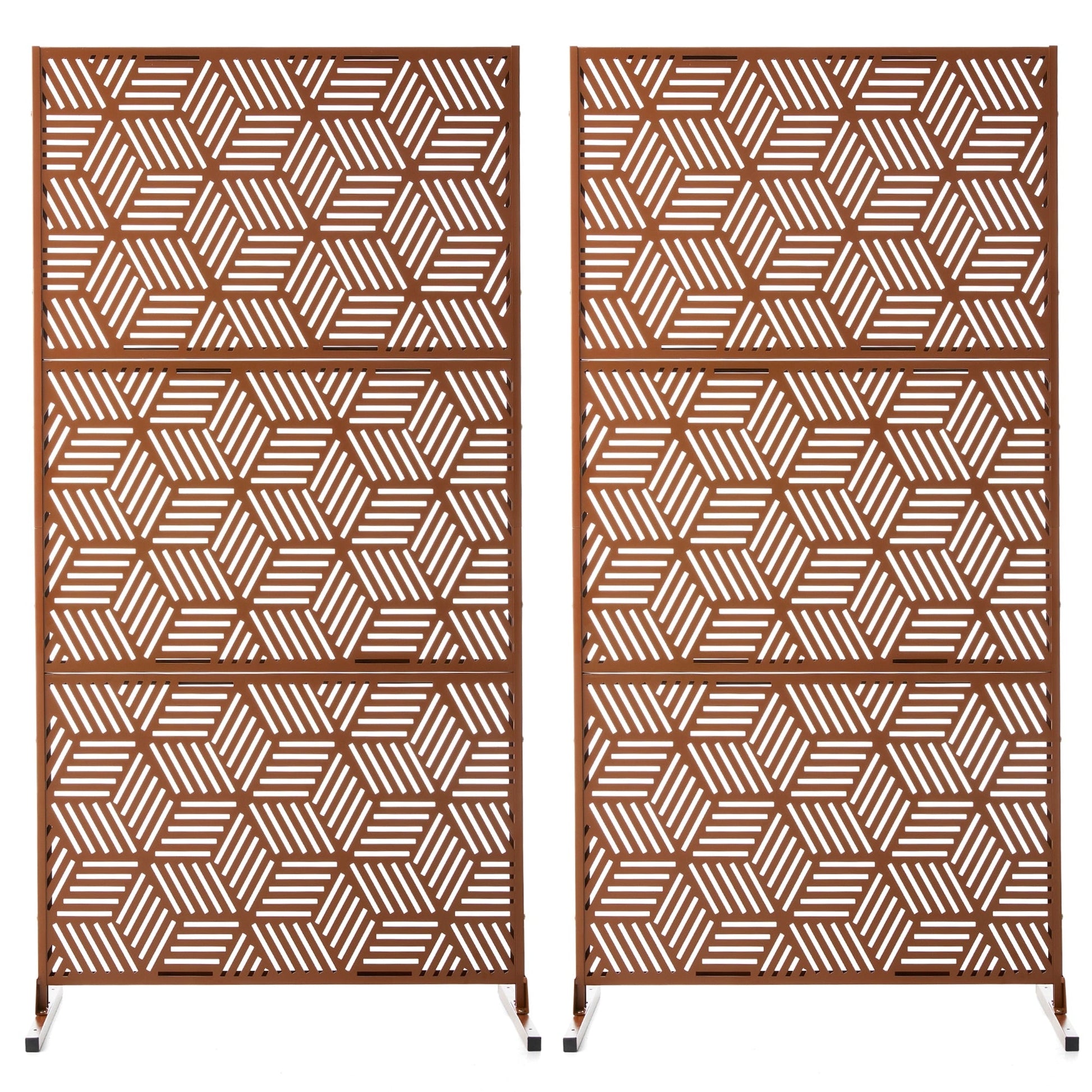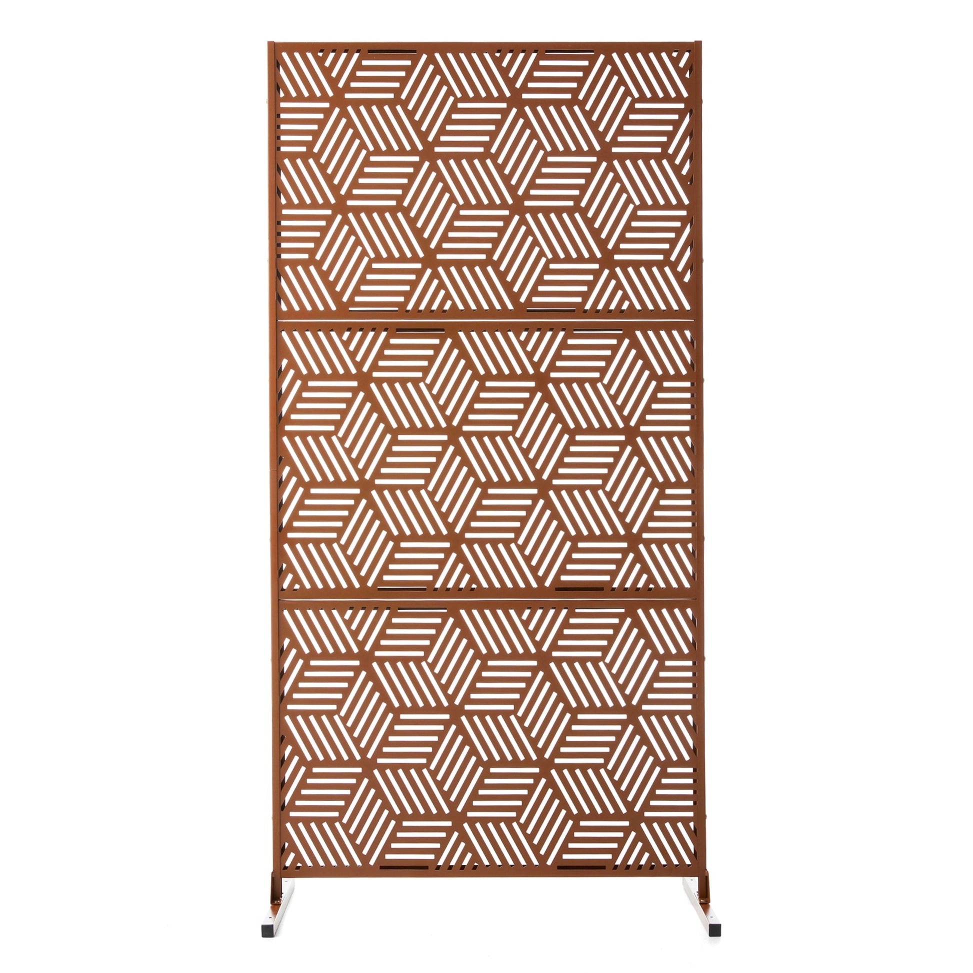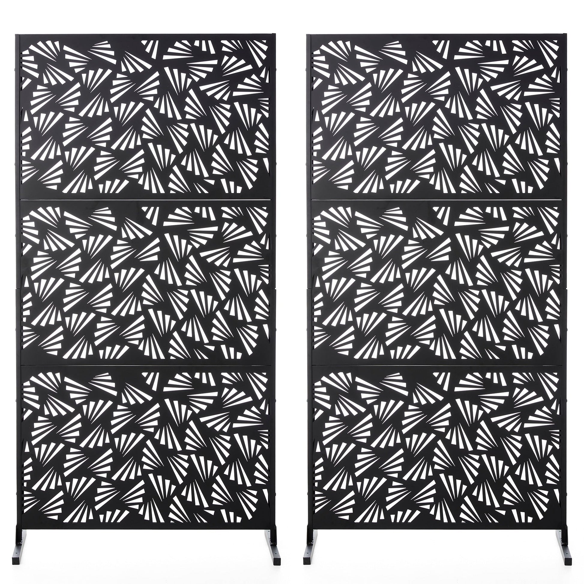 Glitzhome 6ft Galvanized Floral Patterned 3-Panel Privacy Screen Room Divider Fences