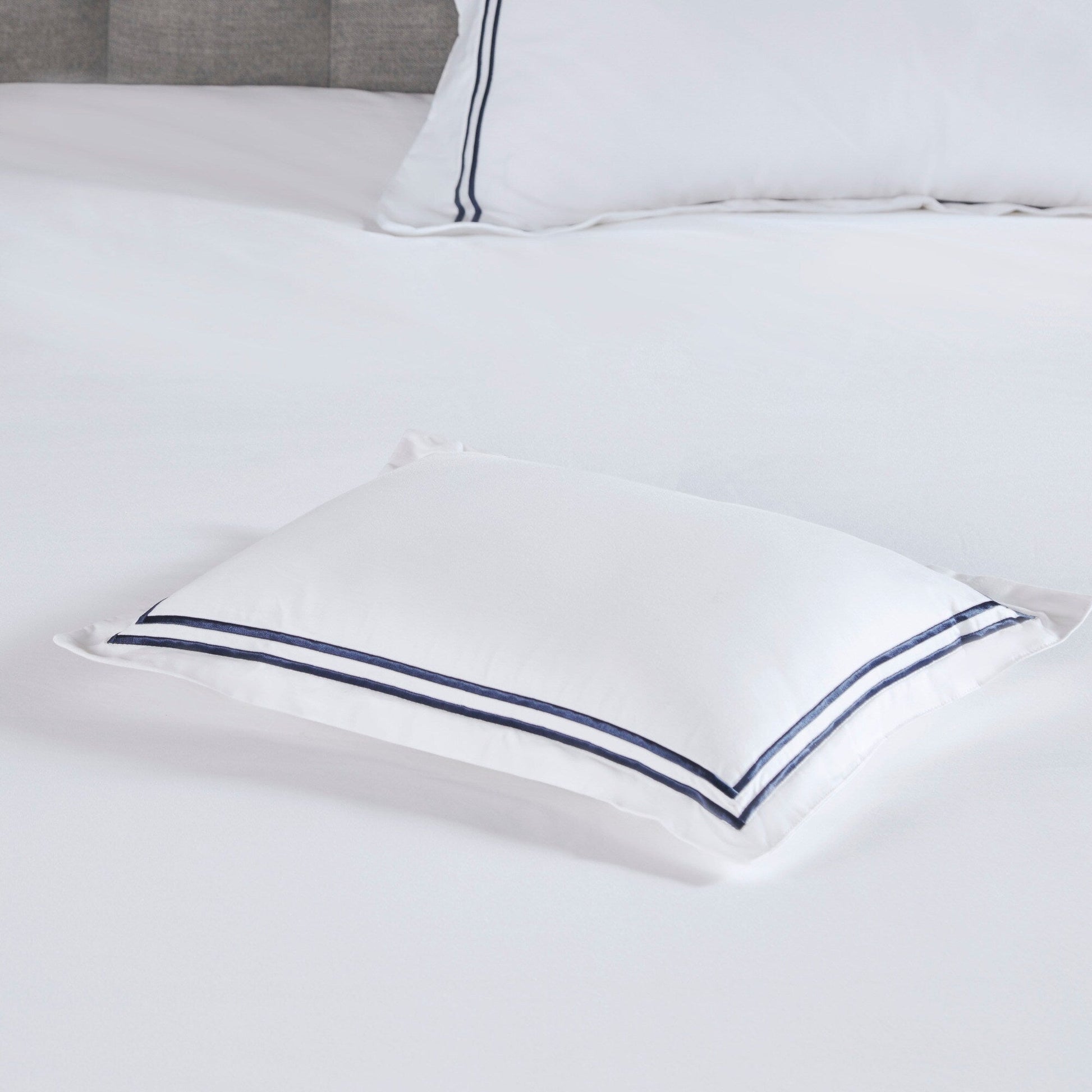 Make every night feel like a luxurious hotel escape with this 500 Thread Count duvet cover set. Made of soft cotton, this refined 4 piece set features a double-row striped embroidered border for an elegant finish. The duvet cover is removable and has corner ties with a zipper closure for easy care. This set is also OEKO-TEX certified, meaning it does not contain any harmful substances or chemicals to ensure quality comfort and wellness.