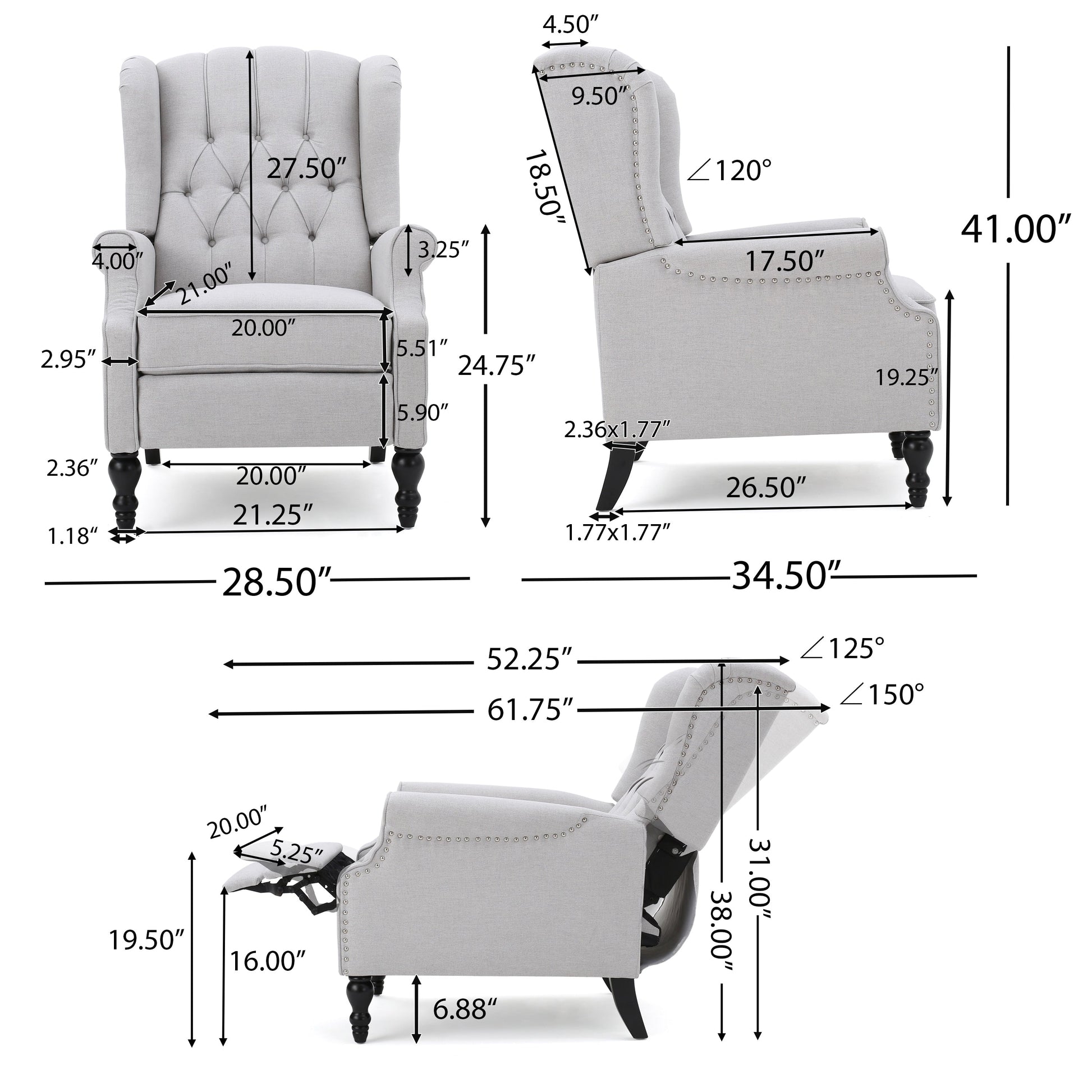 - Seat dimensions: 21.00 inches deep x 20.00 inches wide x 19.25 inches high
